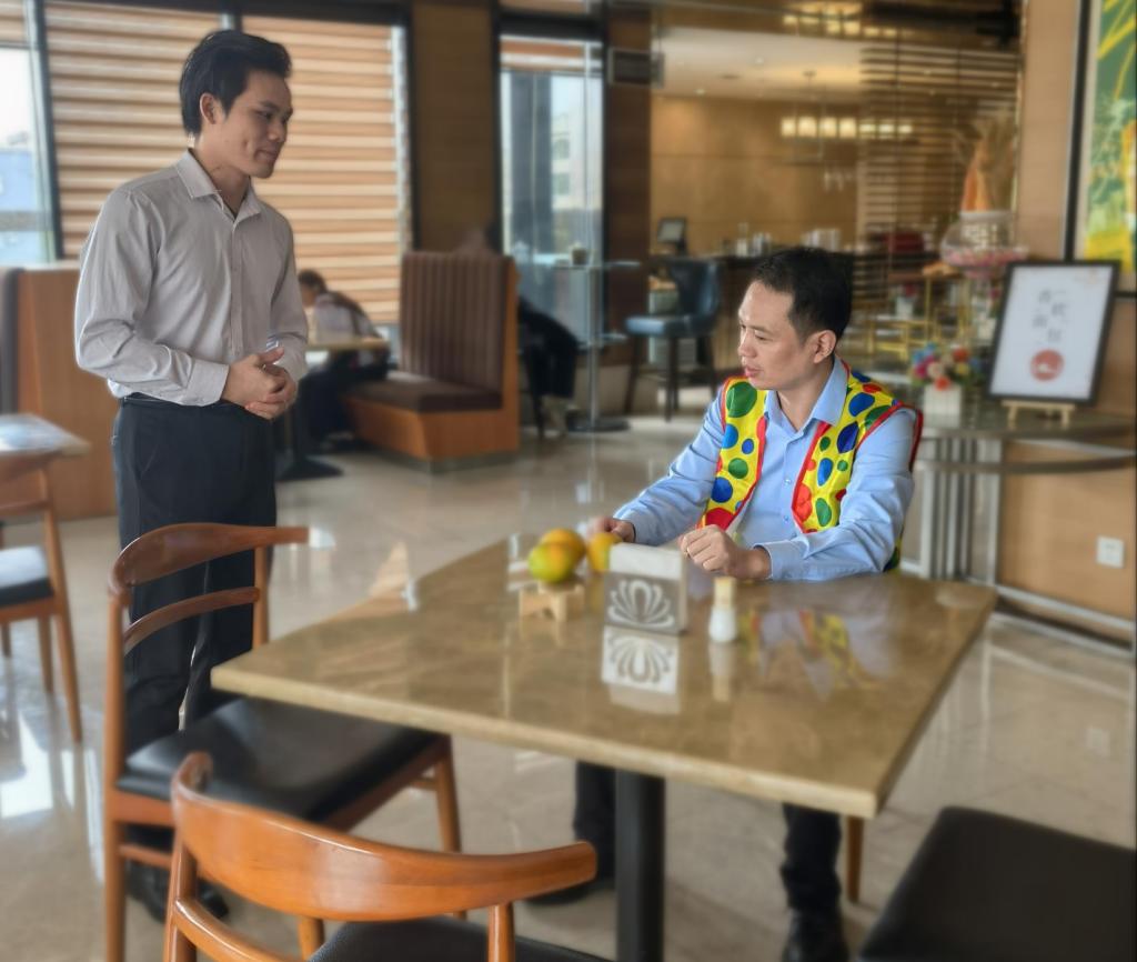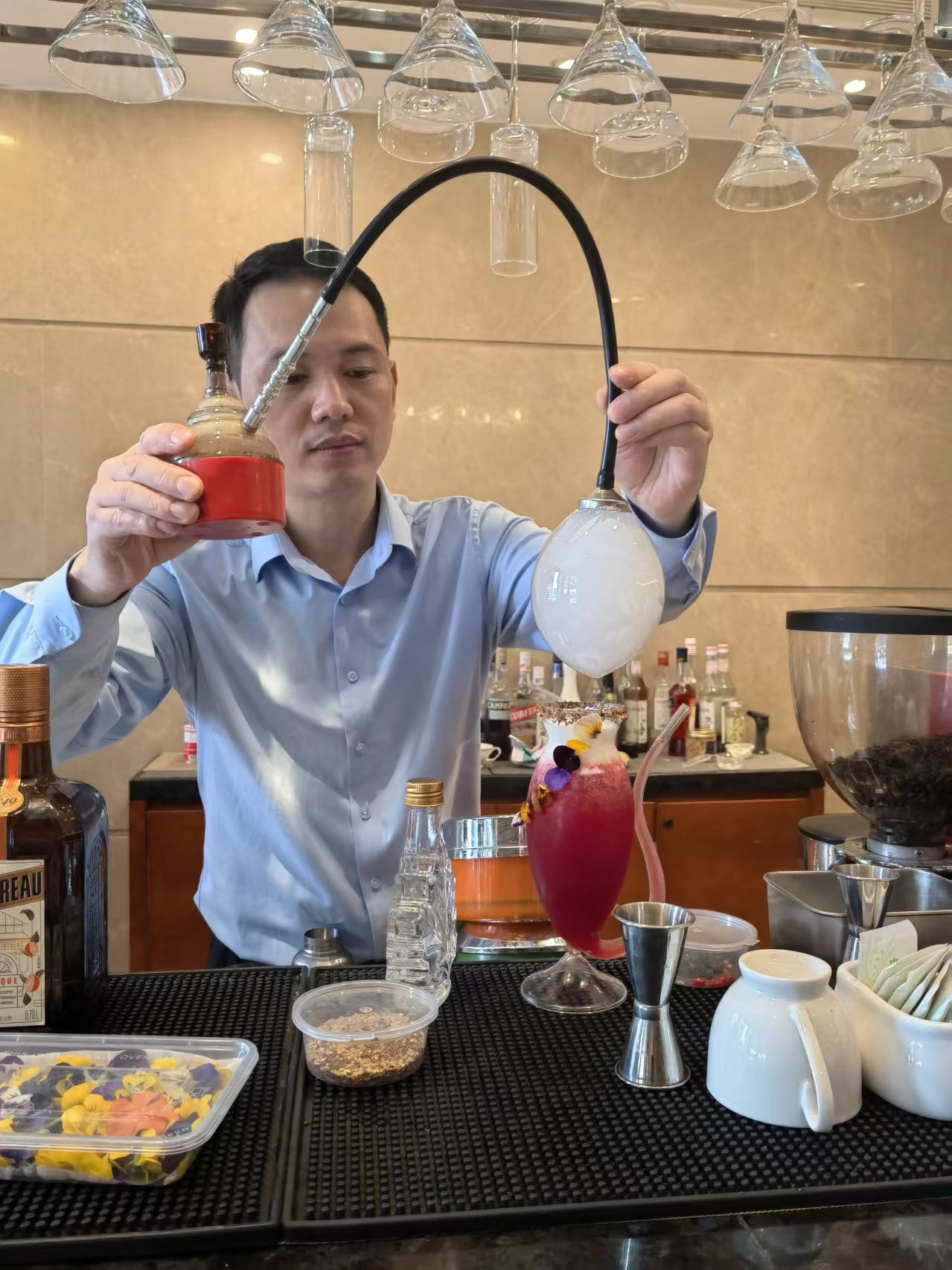 2025 年 10 月 28 日,酒店管理学院江耀辉老师专程前往附属教学酒店太阳城大酒店,与该酒店双岗教师张建、尹涛共同开展备赛研讨,为即将到来的 2025 一带一路暨金砖国家技能发展与技术创新大赛之首届现代饮品融创设计与服务技能赛项全国总决赛(教师组)做充分准备。