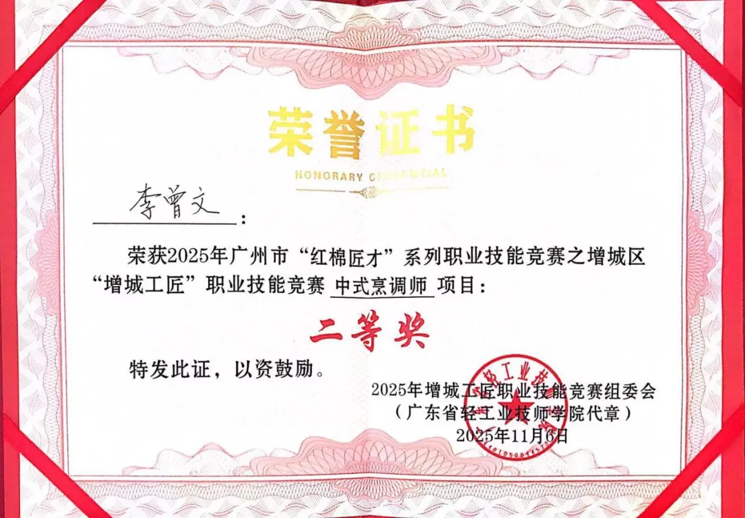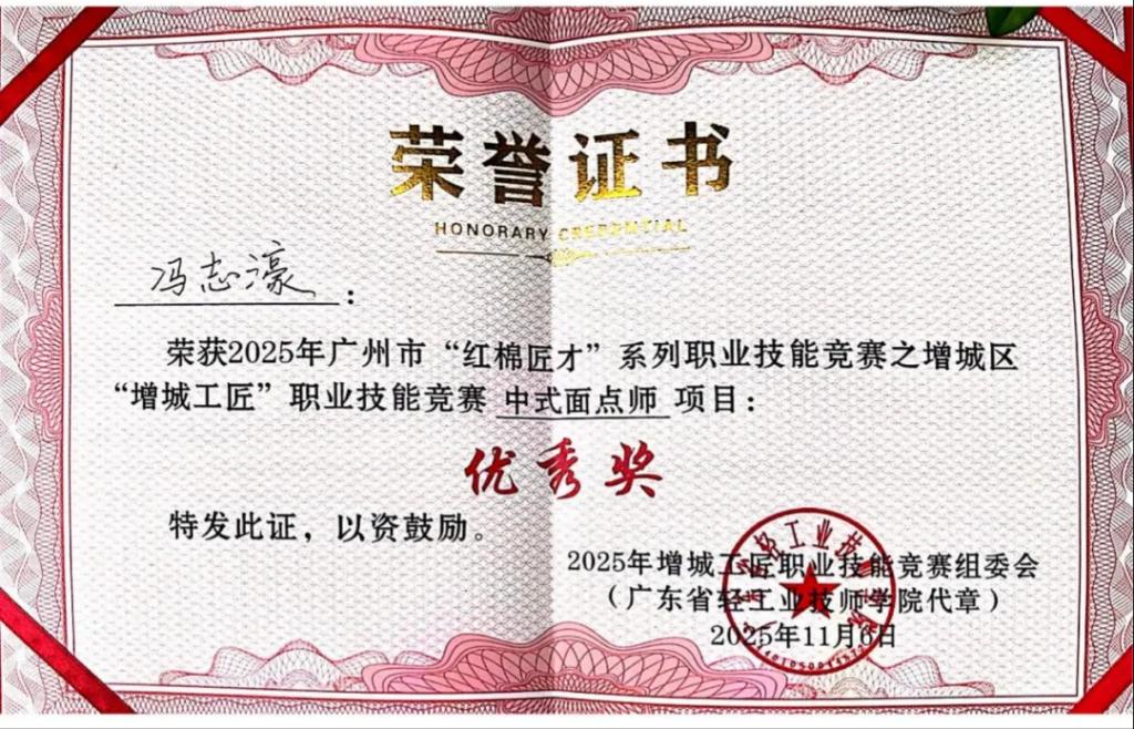 喜报|酒店管理与厨艺学院学子斩获“增城工匠”竞赛佳绩,高级职业证书彰显技能硬实力