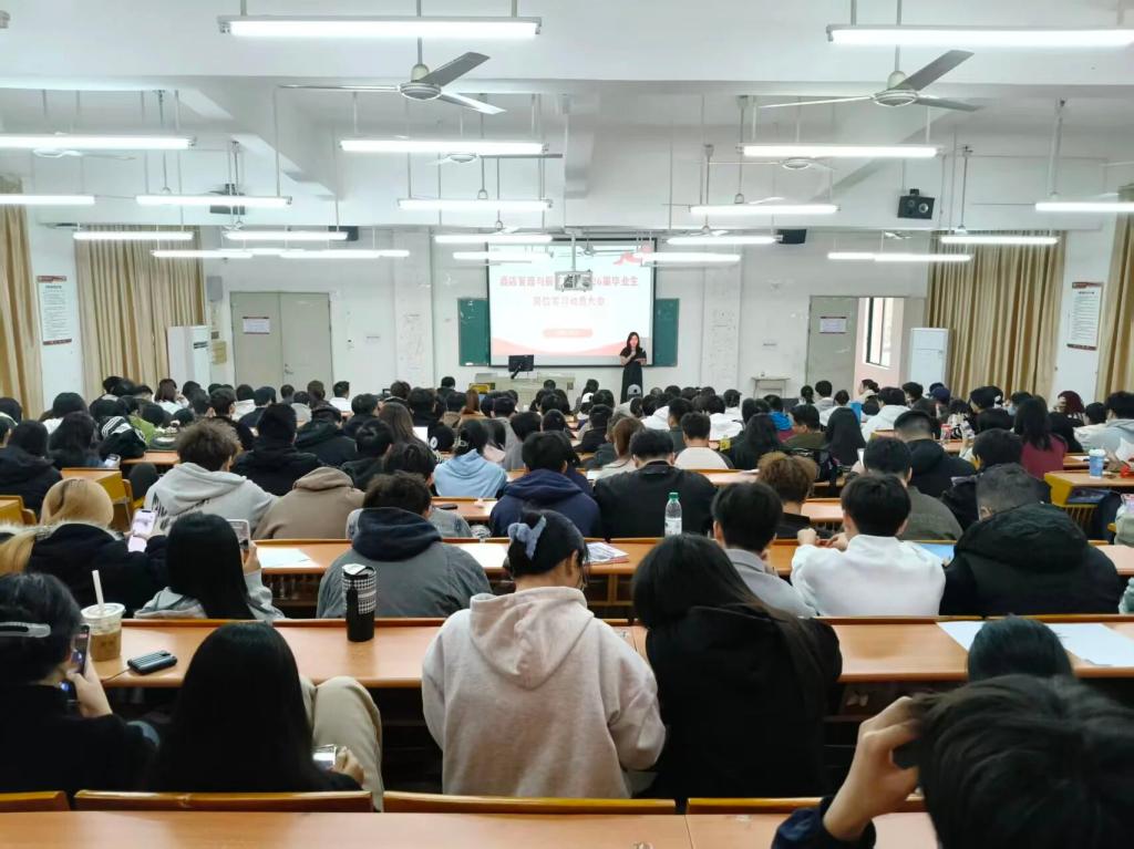 为进一步落实酒店管理与厨艺学院2026届毕业生的岗位实习工作,引导学生做好实习前的各项准备,确保实习工作顺利开展,酒店管理与厨艺学院于2025年11月19日在博C201教室召开了毕业生岗位实习动员大会。酒店管理与厨艺学院院长林红梅、副院长何洪健、副院长谢锦权、实习指导老师、辅导员及全体2026届毕业生参加了本次大会。