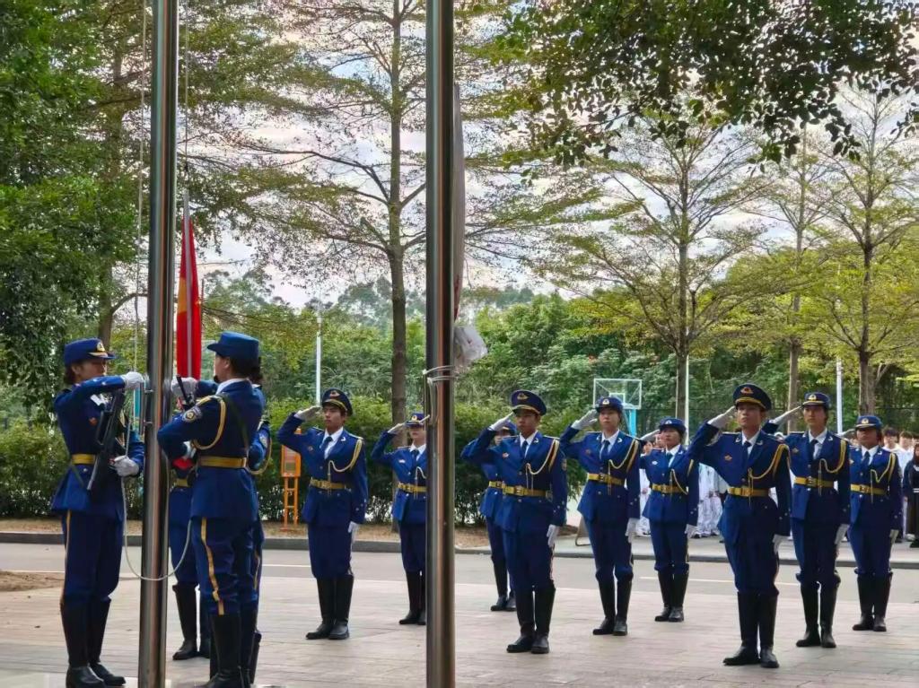 为进一步厚植师生爱国主义情怀、凝聚学院向心力、传承初心使命与理想信念,酒店管理与厨艺学院联合国际教育学院,于11月24日清晨在创教楼前广场开展了以“日月铭初志,旗旌指大同”为主题的升旗仪式。酒店管理与厨艺学院副院长谢锦权、国际教育学院学工负责人董学乾、两院全体辅导员及25级同学悉数参与此次活动。