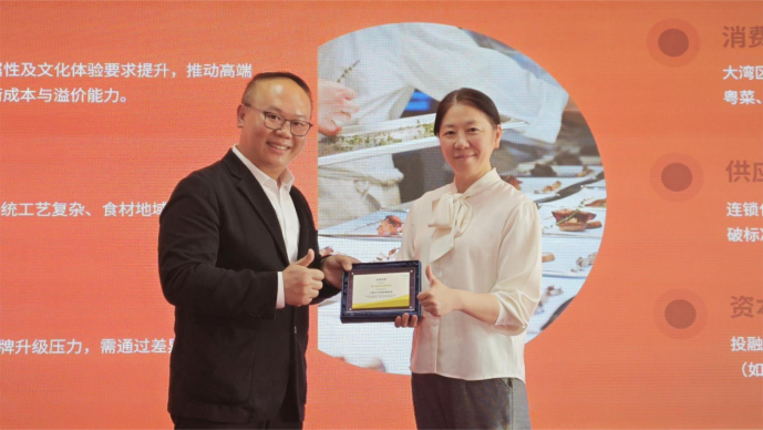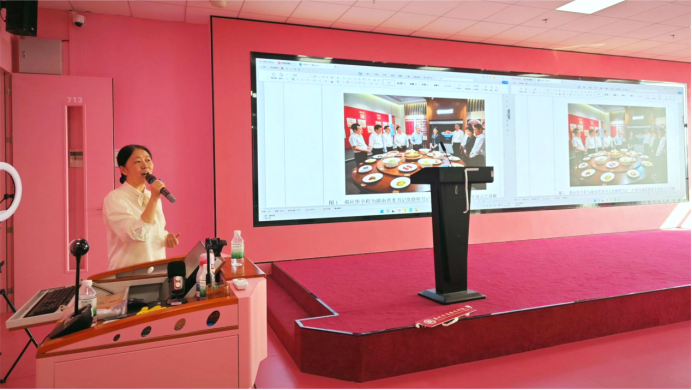 本次讲座由广州华商职业学院酒店管理与厨艺学院(粤菜学院)执行院长邓应华担任主讲。在专题分享环节,邓院长围绕“粤菜餐饮产业发展机遇与挑战分析”展开系统阐述。她指出,在大湾区融合发展的背景下,消费升级推动市场对高品质、文化体验型粤菜需求显著增长,为餐饮行业带来品牌化发展机遇;同时,供应链优化、连锁化经营模式创新及资源投入增加也为产业升级提供支持。邓院长也客观分析了行业面临的挑战,包括传统工艺传承与标准化之间的平衡、食材地域性限制、成本管控压力以及品牌差异化竞争等现实问题。
