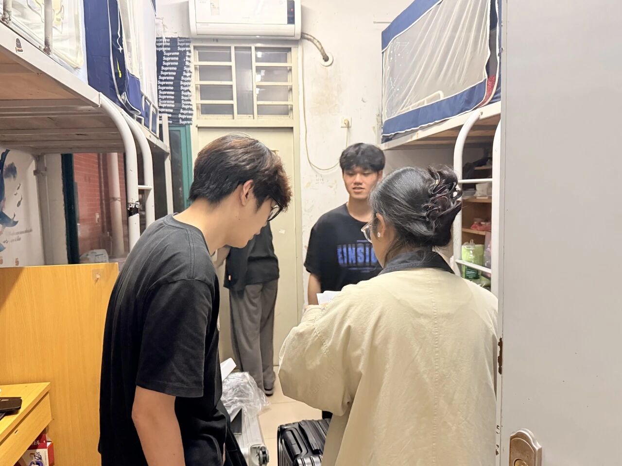 检查过程中,老师们化身暖心引路人,褪去课堂上的严肃,与同学们细心交谈、亲切交流。老师们细致询问大家返校后的适应状态、新学期的学习规划与生活诉求,认真倾听同学们在住宿、学习、生活中遇到的困惑与难题,现场给予针对性解答与暖心建议,用真切的关怀消解学子初返校的陌生感与不适感。一句句贴心叮嘱、一次次耐心交流,让宿舍里充满温情,让学子们切实感受到学院“以生为本”的温暖关怀。