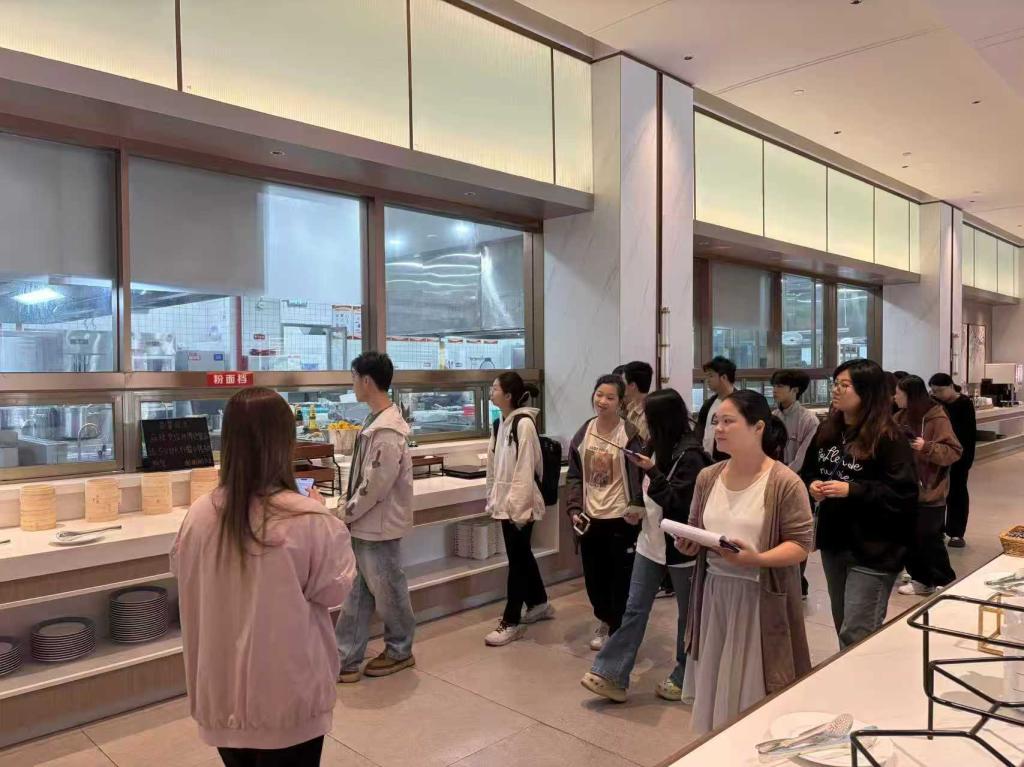 从弘美酒店的智慧会议室配置、模拟医院的三甲级实训设施,到中央图书馆的百万藏书与超长开放时段,再到中西面点实训室的“技艺+文化”融合教学模式,同学们结合提前设计的讲解词,精准传递每个点位的核心信息。讲解过程中,大家注重眼神交流与肢体语言配合,严格遵守“无提词器出镜、表述清晰、逻辑完整”的要求,每个定点讲解控制在5-10分钟,充分展现了旅游管理专业学子的专业素养。