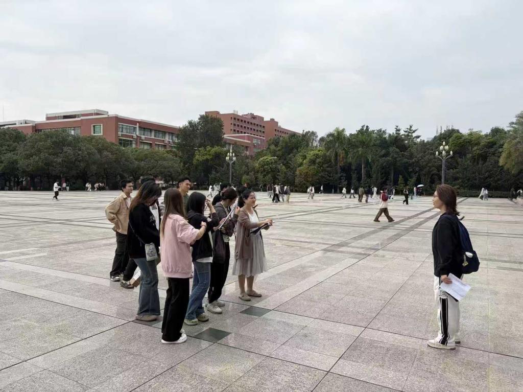 实践当天上午,各组从东区集合出发,前往负责区域开展模拟接待与讲解。讲解现场,同学们化身专业导览员,以饱满的热情、流畅的表达介绍校园亮点。