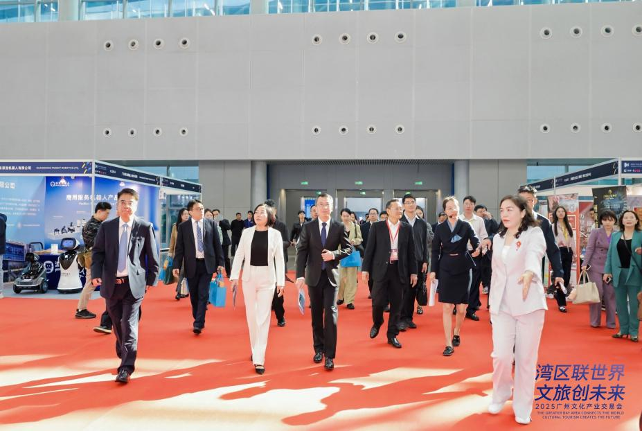 12月19日上午,广州市副市长江智涛、市文旅局局长刘瑜梅等领导一行莅临文交会展厅视察指导。周期副教授以其丰富的专业知识、清晰的表达能力和对广州文化产业的深刻理解,为领导们进行了全程专业讲解。