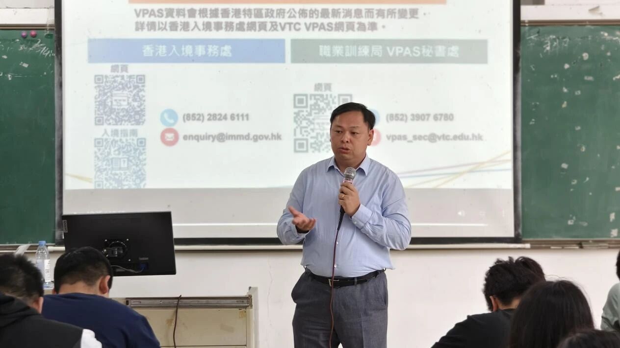 为帮助学生更直观理解VPAS的落地应用,专家现场播放了专题视频资料,通过真实从业者的经历展示计划如何为职专毕业生提供职业发展平台。在互动环节中,学生们就留港政策细节、行业需求趋势及个人职业规划等问题踊跃提问,两位专家逐一解答,现场气氛活跃。