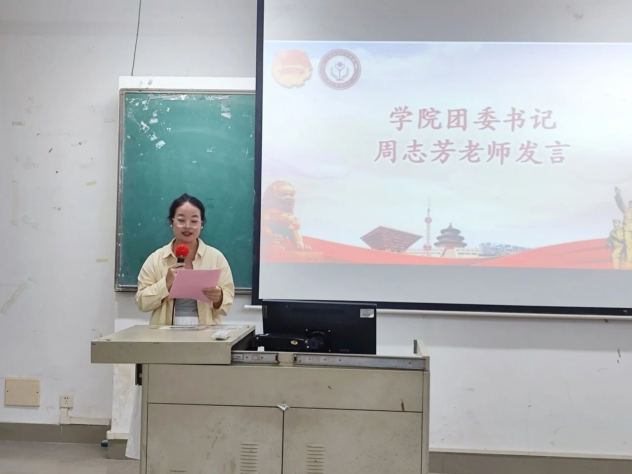 酒店管理学院团委书记周志芳老师发言。她勉励新一届团学干部们:“前路纵有万千机遇与挑战,期待各位学生干部能以更饱满的热情、更坚实的步伐,书写无愧于时代的青春华章”。她表示,我院团委、学生会将始终坚守服务广大师生的初心,在实践中不断进步与成长;我们逐梦前行,携手共创学院团学工作更精彩的未来。