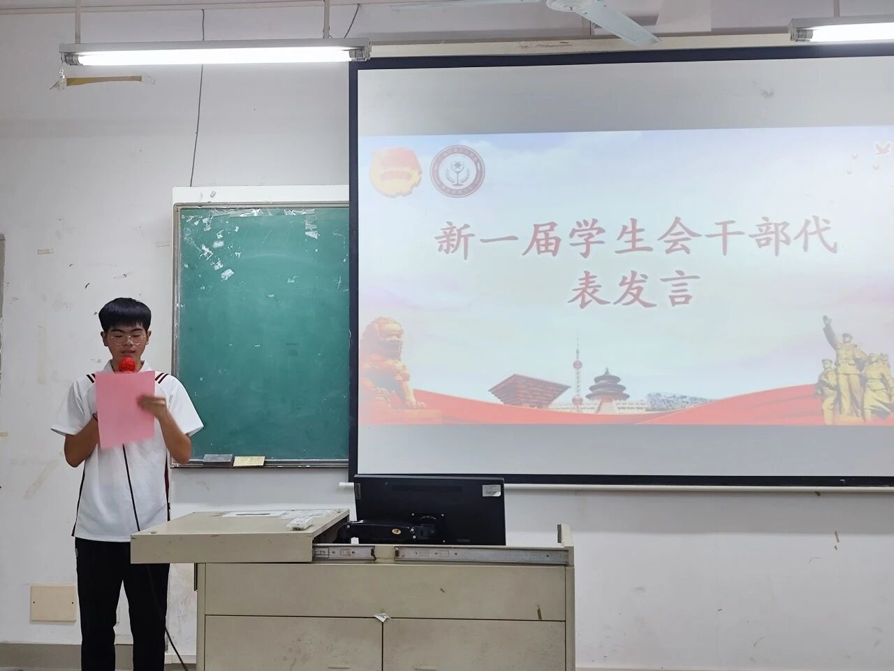 新一届组织部工作人员代表刘欣桐同学表示,作为学生会的一员,表达了与大家并肩奋斗的决心。她坚信,前路漫漫,唯有携手合作;重任在肩,更需同行互助。让我们汇聚每一份涓滴之力,共创璀璨明天!