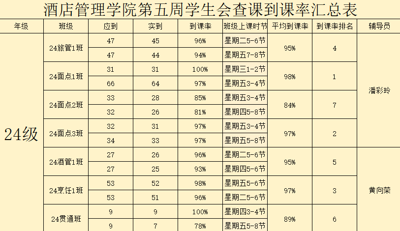 24级酒店管理1班:95%
