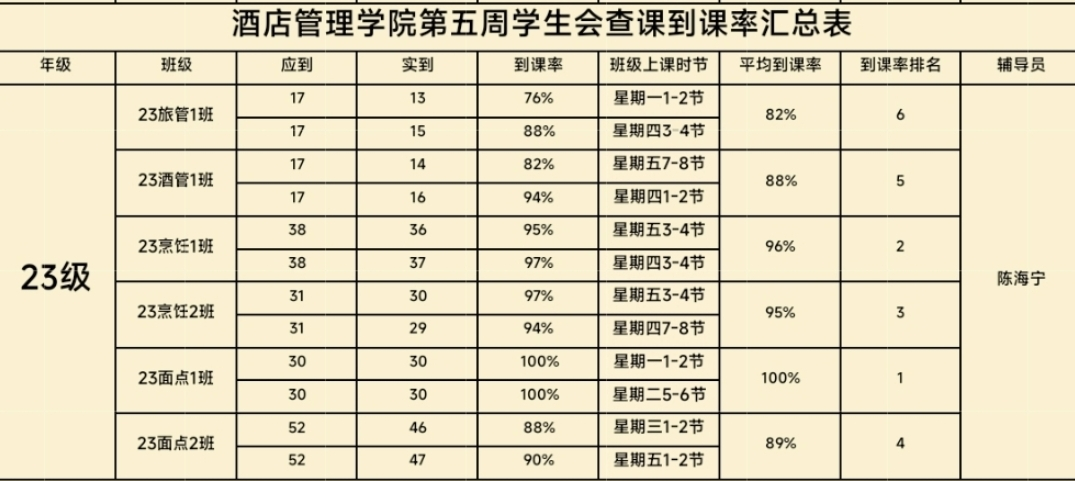 23级酒店管理1班:88%