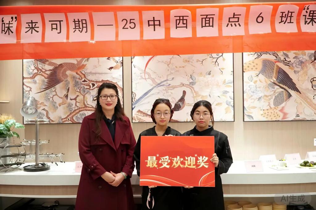 点评环节中,嘉宾们对25面点工艺6班学子的专业素养与创新能力给予高度评价。杨伟传院长称赞道:“同学们的作品兼具基本功底与青春创意,实现传统技艺与现代审美的完美融合,充分彰显‘课堂革命’的育人成效。”经过严格评审,活动最终评选出一等奖1组、二等奖2组、三等奖3组及最受欢迎奖1组。(一等奖联合组长:卢璐;二等奖联合组长:邬丽、余冰慈;三等奖联合组长:劳炫、何金俞、詹嘉祺;最受欢迎奖联合组长:卢璐)现场举行颁奖仪式,嘉宾们为获奖小组颁发荣誉证书及相关奖励,鼓励全体学子深耕面点技艺、传承匠心精神。